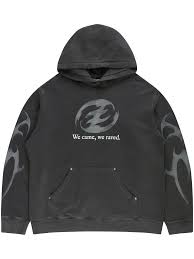 Ceec Distressed Metal Charm Print Distressed Hoodie in Dark Grey