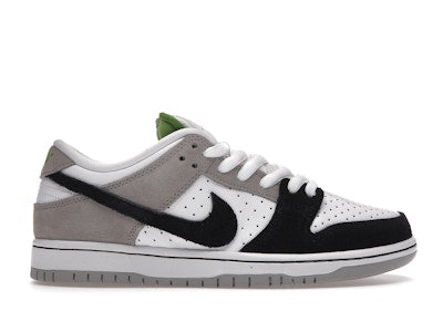 Drawing inspiration from the original Nike Air Trainer 1 Chlorophyll, the Nike SB Dunk Low Chlorophyll features a white perforated leather upper with grey and black hairy suede overlays. Hits of green on the heel embroidery and lining add a subtle contrast. At the base, a white Zoom Air sole adds the finishing touch.